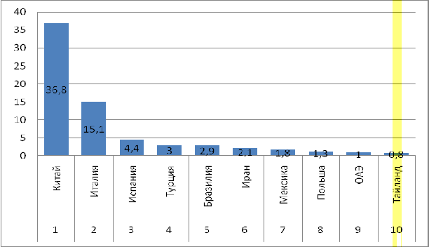 Рисунок 6. Страны-экспортеры керамической плитки в 2012 году,%