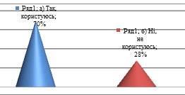 За результатами опитування можна побачити, що більшість є користувачами мережі Інтернет. Сьогодні глобальна мережа надає можливість для отримання будь - якої інформації, при цьому послуги доступу потребують все менше и менше матеріальних витрат, тому, звичайно, кількість користувачів мережі дуже велика.
