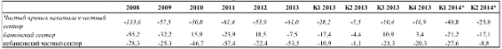 Чистые потоки капитала, 2008 г.- 2 кв. 2014 г. (млрд. долл. США)