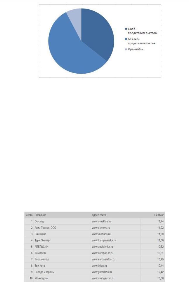 Таблица 2 – Рейтинг омских турфирм по графическому оформлению сайта [4; 5].
