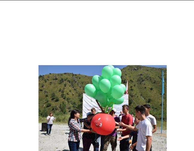 26 июля, в соответствии с Программой, состоялось торжественное открытие мероприятия. Разработкой сценария занимались ответственные за данную часть программы члены оргкомитета. Торжественное построение началось с исполнения Государственного Гимна Республики Казахстан. Затем участников и гостей с началом Экспедиции поздравил Руководитель управления туризма и внешних связей г. Алматы. Изюминкой открытия стало исполнение авторской песни об Алматы под саксофон и запуск в небо символа города – огромного яблока «Апорт» (рис. 2).