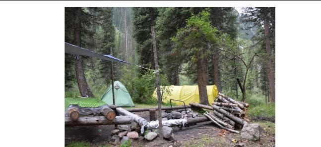Входе подготовки лагеря для размещения участников в Большом Алматинском ущелье была выполнена рекогносцировка возможных мест организации лагеря с учетом транспортной доступности, комфортности, мер безопасности (включая пожарную безопасность и санитарноэпидемиологические нормы и правила), с выездом в Большое и Малое Алматинские ущелья. В результате, с учетом обозначенных выше принципов и по согласованию с дирекцией ГНПП «ИлеАлатау» была выбрана площадка в Большом Алматинском ущелье в районе урочища Аю-Сай. Была выполнена планировка и разметка территории на местности (в последствии схема палаточного лагеря была отражена на специальном баннере, который был размещен на поляне перед штабом экспедиции).
