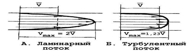 Рис. 5. Особенности ламинарного и турбулентного потоков.