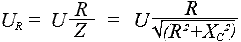 Если к источнику переменного синусоидального напряжения U частотой f подключить последовательно резистор сопротивлением Rи конденсатор ёмкостью C, падение напряжения на каждом из элементов можно вычислить исходя из коэффициента деления с импедансом Z.