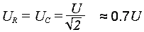 где XC - реактивное сопротивление конденсатора, равное 1/2πfC