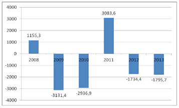 обуславливается дефицитом бюджета практически во всех годах периода 2008-2013