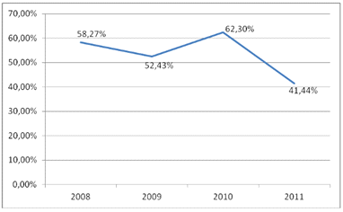 г. она резко сократилась до 41,44%, что более, чем на 20% меньше прошлого года.