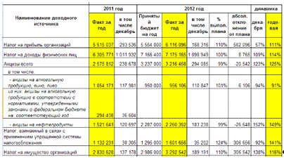 финансовой налоговой службой России доходов в федеральный бюджет в 2012 году