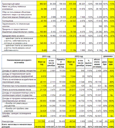 В данной таблице предоставлен анализ налоговых и неналоговых поступлений в областной бюджет.