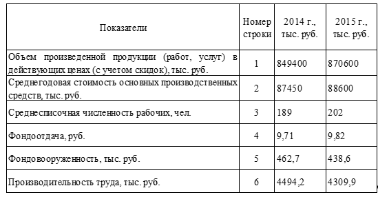 Таблица 2 - Годовые показатели ООО «Спецстрой» 2014 - 2015 гг.
