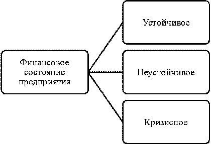 Под финансовым состоянием понимается способность предприятия финансировать свою деятельность. Оно характеризуется обеспеченностью финансовыми ресурсами, необходимыми для нормального функционирования предприятия, целесообразностью их размещения и эффективностью использования, финансовыми взаимоотношениями c другими юридическими и физическими лицами, платежеспособностью и финансовой устойчивостью. Финансовое состояние может быть устойчивыми, неустойчивыми и кризисным.