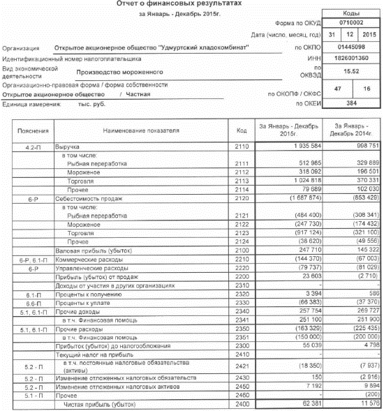 ОАО «Удмуртский хладокомбинат» имеет низкий показатель рентабельности