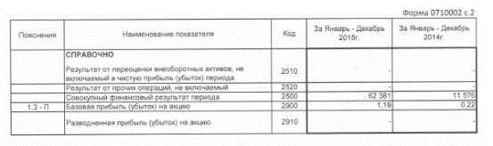 К примеру: по данным на 1 января 2016 года чистая прибыль составила 54