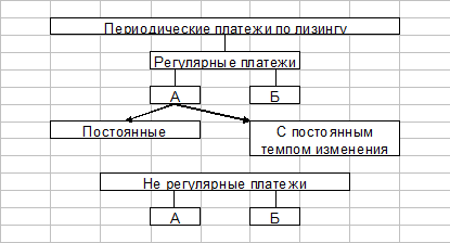 Регулярные платежи - лизинговые платежи, производимые через равные интервалы времени (ежемесячно, поквартально, ежегодно) в конце или начале периодов. Различие между схемами А и Б заключается в последовательности расчётов: