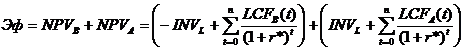 арендного финансирования лизингодателя (NPVВ) и арендатора (NPVА) по формуле