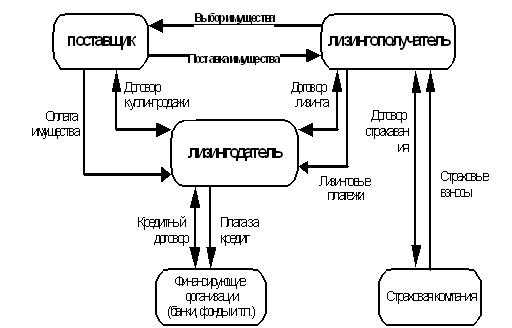 Рисунок 3 - Общая схема лизинговой сделки и финансовых