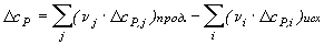 Энтальпия реакции равна разности сумм энтальпий сгорания начальных и конечных реагентов с учетом их стехиометрических коэффициентов.