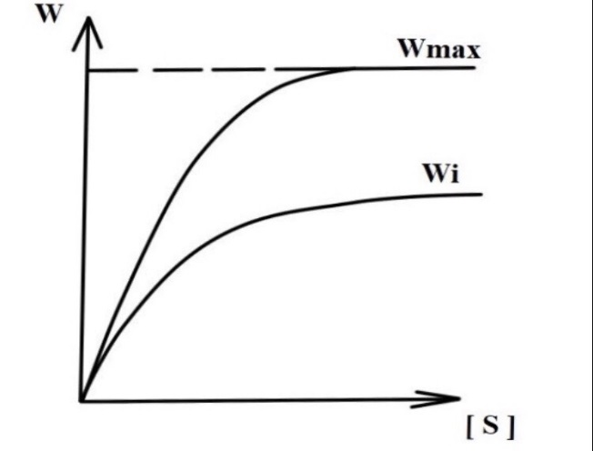 В приведенных ниже графиках, построенных в координатах W и [S], а также 1/w и 1/[S],