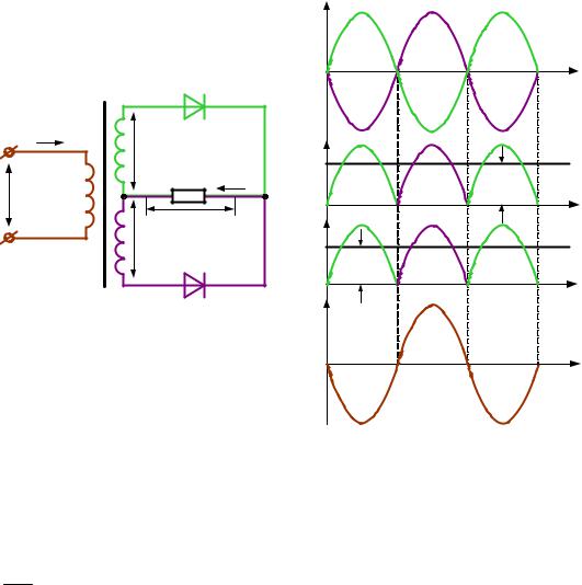 Рис. 2.24. Однофазный двухполупериодный выпрямитель со средней точкой