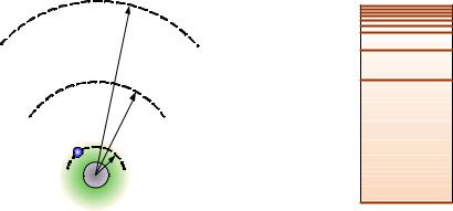 Всоответствии с квантовой теорией энергия электрона вращающегося по своей орбите вокруг ядра не может принимать произвольных значений. Электрон может иметь только вполне определенные дискретные, или квантованные, значения энергии и дискретные значения орбитальной скорости. Поэтому электрон может двигаться вокруг ядра только по определенным (разрешенным) орбитам (рис. 1.1).