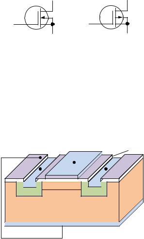 Устройство такого транзистора показано на рис. 4.9. От предыдущего транзистора он отличается тем, что у него нет встроенного канала между областями истока и стока.