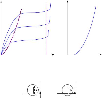 Рис. 4.10. Статические характеристики МДП-транзистора с индуцированным каналом n-типа