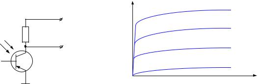 к увеличению коллекторного тока, как если бы на вход транзистора был бы подан входной сигнал, вызвавший такую же инжекцию носителей. Но здесь вместо входного электрического сигнала был использован световой сигнал. Коллекторный ток Iк βIф, где β – коэффициент передачи тран-