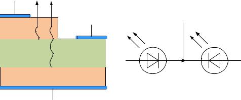 Рис. 6.28. Структура двухцветного светодиода (а); условное графическое обозначение двухцветного светодиода (б)