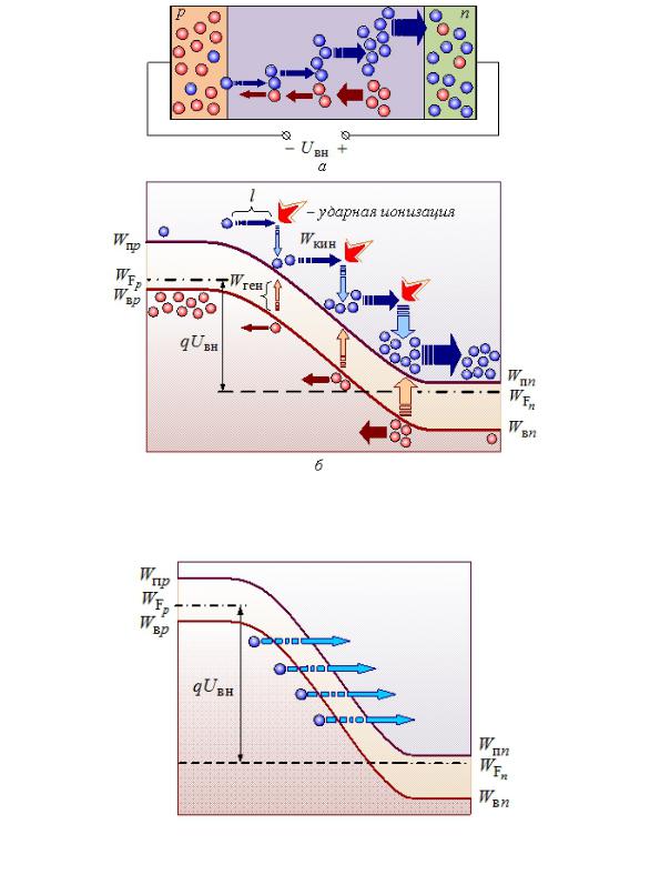 Рис. 1.20. Схема, иллюстрирующая лавинный пробой в p–n-переходе: