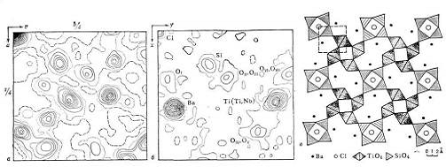 Ba4Ti4(Ti,Nb)4[Si4O12]O16Cl; a - функция межатомных векторов, проекция на