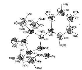 Рисунок 7 - Эллипсоиды анизотропных тепловых колебаний атомов стабильного нитрон-сильного радикала C13H17N2O2.