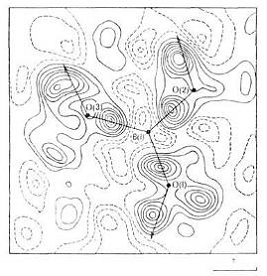 уточнения атомной модели, сгущения линий равного уровня отвечают положениям