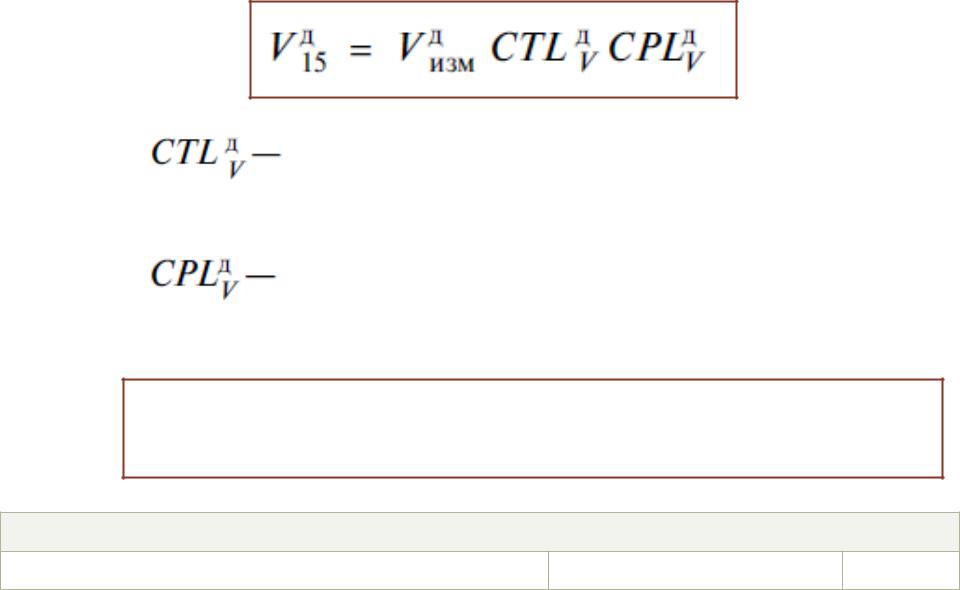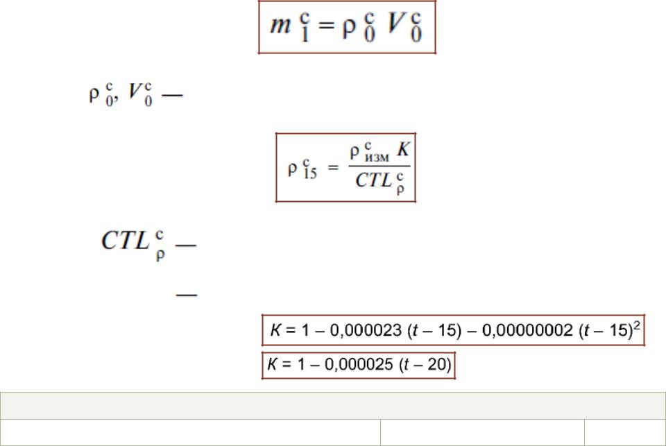 плотность и объем продукта, измеренные в емкости и приведенные к стандартным условиям (t = 15 ºC).