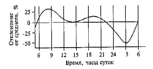 Дневная работоспособность. С утра (7.00) PWC снижена,примерно к 9 часам она возрастает и к 11 достигает максимума, после чего начинается спад к 13-14 часам . В 16.00 наступает менее выраженный подъём примерно до 19.00, затем снижается и приходит необходимость сна.