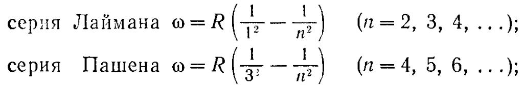В спектре водорода имеется несколько серий. В УФ-части спектра — серия Лаймана, а в инфракрасной области — серия Пашена.