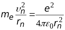 Рассмотрим круговые электронные орбиты. На электрон с зарядом -e со стороны ядра с зарядом +e действует сила Кулона F, сообщая электрону нормальное ускорение,