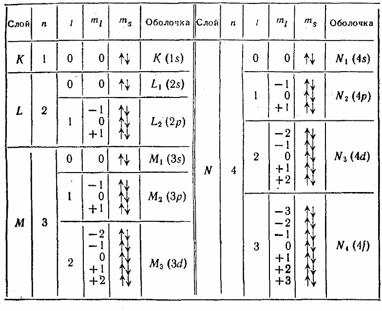 В нормальном (невозбужденном) состоянии атома электроны должны располагаться на самых низких доступных для них энергетических уровнях. Поэтому, казалось бы, в любом атоме в нормально состоянии все электроны должны быть в состоянии 1s (n=1,l=0). Но это не так.