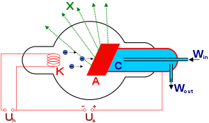 Источник: рентгеновская трубка. При взаимодействии электронов с материалом антикатода образуется рентгеновское излучение.