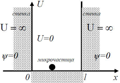 Таким образом, микрочастица в потенциальной яме с бесконечно высокими стенками может находиться только на определенном энергетическом уровне En, или как говорят, частица находится в квантовом состоянии n.