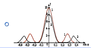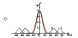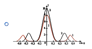 Одна и та же дифракционная решетка освещается различными монохроматическими излучениями с разными интенсивностями. Какой рисунок соответствует случаю освещения светом с наименьшей частотой? (J – интенсивность света, φ – угол дифракции). |