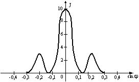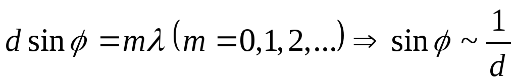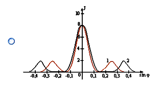 Имеются 4 решетки с различными постоянными d, освещаемые одним и тем же монохроматическим излучением различной интенсивности. Какой рисунок иллюстрирует положение главных максимумов, создаваемых дифракционной решеткой с наибольшей постоянной решетки? (J – интенсивность света, φ - угол дифракции). |