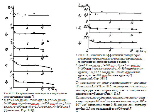 Ценную информацию о процессах в отрицательном свечении дает метод зондов [Грановский, 1971, с. 316]. Остановимся на результатах, полученных в гелии методом экранированного зонда.