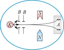Атомы серебра летели с тепловой скоростью около 100 м/с через щелевые диафрагмы В и, проходя резко неоднородное магнитное поле, попадали на фотопластинку А.