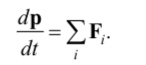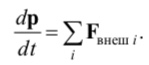 В соответствии со вторым законом Ньютона изменение импульса системы тел dp в единицу времени равно сумме всех сил Fi, действующих на