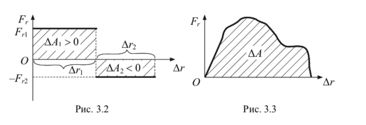 действием силы можно определить с помощью графика зависимости проекции силы на направление перемещения от перемещения Fr Fr (r) : работа численно равна заштрихованной площади (рис. 3.2) под линией графика. Этот вывод справедлив для любой зависимости Fr Fr (r) (рис. 3.3).