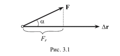 Механической работой ΔА, совершаемой постоянной силой F на перемещении Δr материальной точки, называется скалярная физическая величина, равная A Frcos, где – угол между векторами силы и перемещения (рис. 3.1).