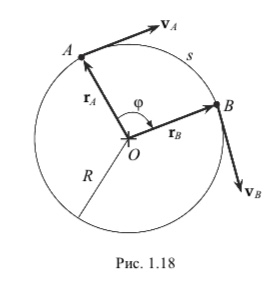 Движение по окружности является простейшим примером криволинейного движения. Положение материальной точки при этом виде движения (рис. 1.18) задается в любой момент времени t либо длиной дуги s, равной пройденному за промежуток времени t пути, либо углом поворота φ радиус-вектора r, определяющего положение этой точки на траектории относительно центра окружности.