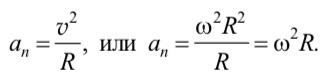 Так как при равномерном движении по окружности вектор линейной скорости v точки изменяется по направлению, оставаясь постоянным по модулю, точка движется с ускорением an, модуль которого определяется следующими выражениями: