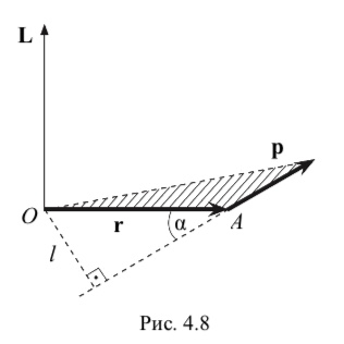 Пусть r – радиус-вектор, характеризующий положение рассматриваемой частицы (точка А на рис. 4.8) относительно некоторой точки О выбранной системы отсчета, а p – импульс этой частицы в той же системе.
