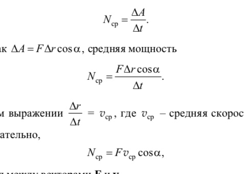 Быстрота совершения работы характеризуется мощностью. Средней мощностью Nср называется физическая скалярная величина, равная отношению работы ΔА к длительности промежутка времени t, в течение которого совершается эта работа: